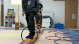 運動遊びではみんなでバームクーヘンを作る過程を表現してもらいました
