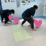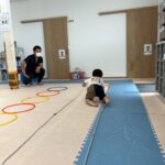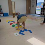 おしりを上げて一歩一歩進みます。次はフープジャンプ🦘