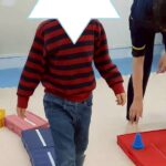 サーキットではコーンを足で挟んで重ねたり、トランポリンで跳んだりしました!