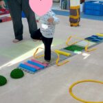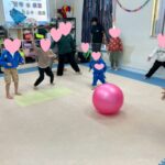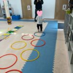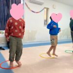 方向指示ジャンプでは運動リーダーの指示をよく聞いて前後左右へジャンプ!