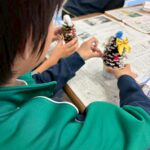 おおきな松ぼっくりツリーを作ったり、ハサミで切って