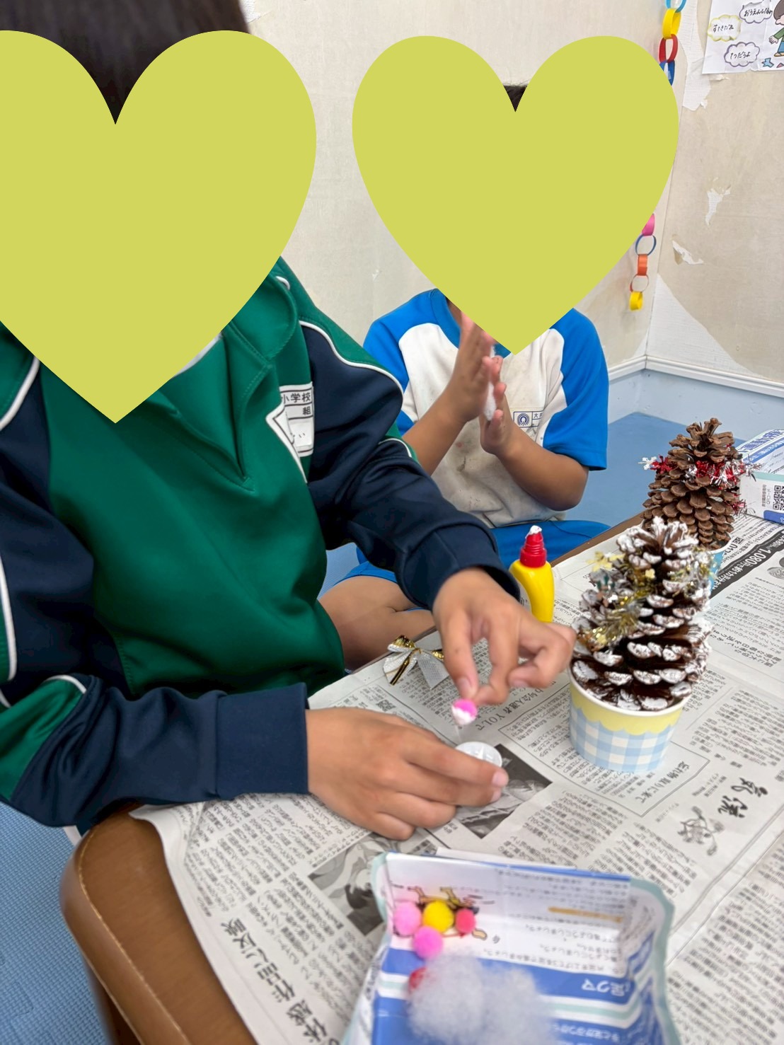 今日は大きな松ぼっくりを使ってクリスマス制作もあります⭐