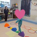 次はプレゼント運びリレーです🎈チームになってサイコロを振り出た数字のプレゼントを袋の中に入れて教室の中を走ります!