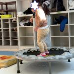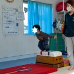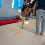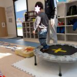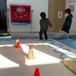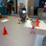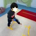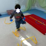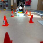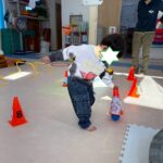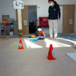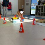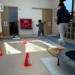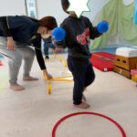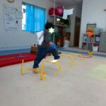 サーキットはフープ・ハードル・段ボールタクシーでボール運び・トランポリン・跳び箱ジャンプ等を行いました。