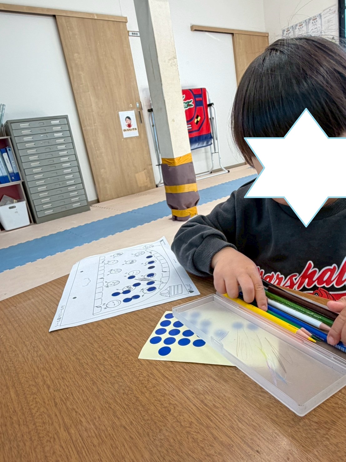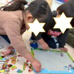 活動が始まる前の自由時間は、🍩ドーナッツ屋さん・ぬりえ・パズル等好きな遊びを選んで楽しく過ごしています。