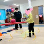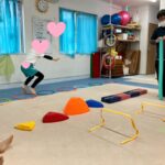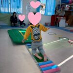 もう一つのコースはフープジャンプはカエルジャンプ🐸、平均台、カラーストーン渡り、バランス3秒というコースでした(*´ω`*)
